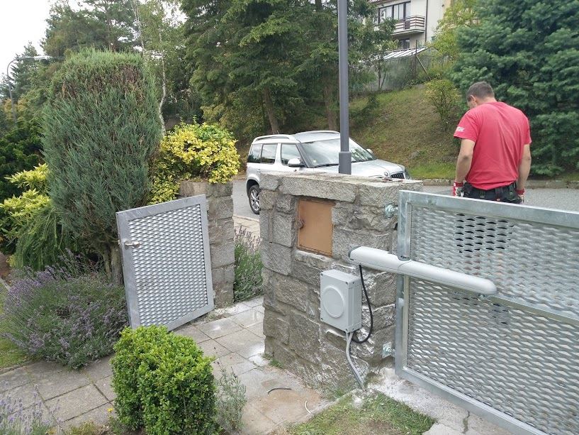 Křídlová brána ocelová rozm. 2660x1100mm s výplní 3D tahokov struhadlo, branka vchodová ve stejném designu. Dvoukřídlá brána se ovládá elektrickým pohonem Nice s dálkovým ovládáním. Tuto zakázku jsme vyrobili a namontovali u rodinného domu v Třebíči.