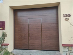 Sekční vrata s dveřmi, ořech, Rokytnice