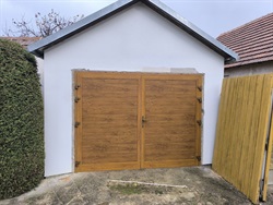 Křídlová zateplená vrata - zlatý dub - Kojetice