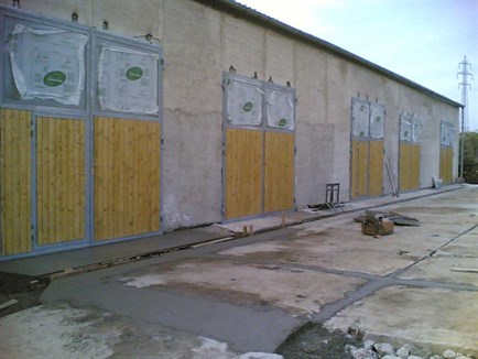 Křídlová vrata z v ocelovém pozinkovaném rámu jsou vyplněna dřevěnou lakovanou palubkou. Do horní části vrat je vloženo prosklení. V prvních vratech jsou průchozí personální dveře. Tuto zakázku jsme montovali v Třebíči.