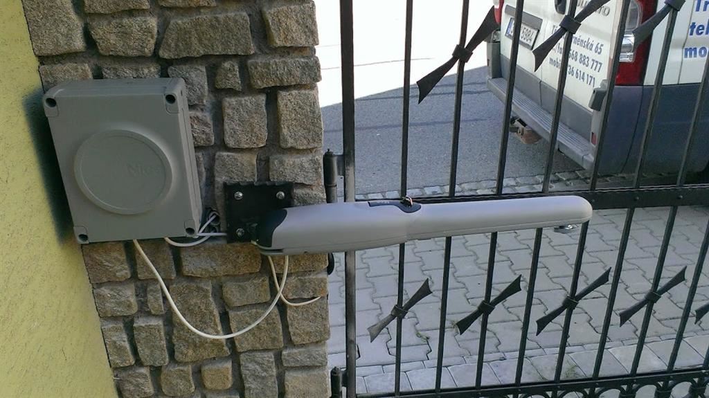 Sada pohonů na křídlovou bránu Nice Wingo2024 obsahuje dva pohony, řídící jednotku, přijímač, vysílač, fotobuňky a maják. Elektrické ovládání na křídlovou bránu jsme instalovali v Předíně na Třebíčsku.