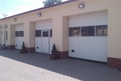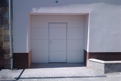 Sekční vrata s hliníkovým prosklením a dveřmi