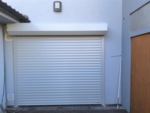 Rolovací vrata z lamely 77 v šedé RAL 7038 včetně boxu a vodících lišt. Rozm. 2680x2400 mm. Vrata se ovládají elektrickým trubkovým pohonem s dálkovým ovládáním. Tato rolovací vrata jsme montovali v Třebíči.