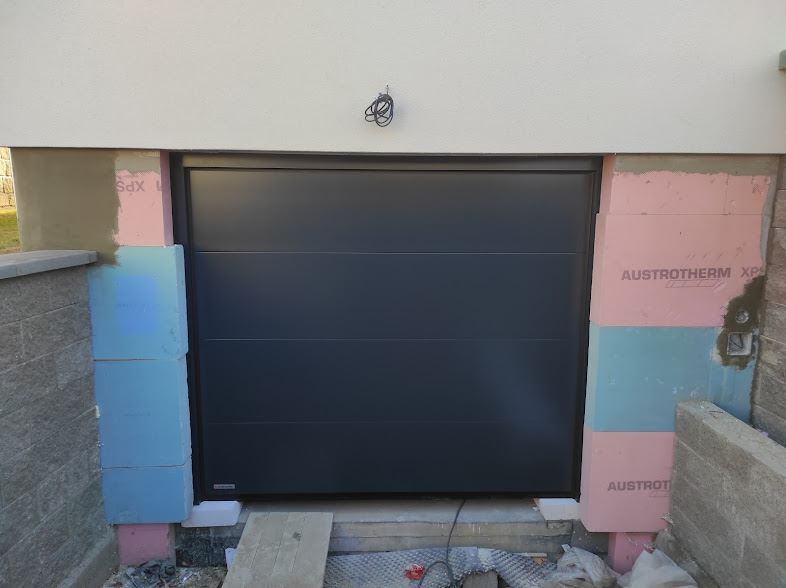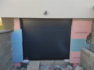 Sekční vestavba - vrata s rámem do otvoru v RAL 7016, rozm. 2220x1940mm. Sekční vrata se ovládají elektrickým pohonem s dálkovým ovládáním. Tato vrata jsme namontovali v Třebíči.