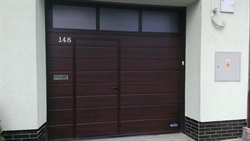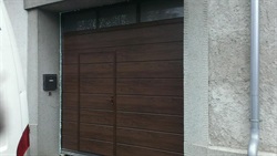 Sekční vrata s dveřmi mahagon