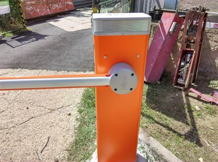 Automatická závora Nice X-bar do šířky vjezdu 4m, vestavěná elektronika s přijímačem, závora se ovládá dálkovým ovládáním. Tuto automatickou závoru jsme instalovali ve Znojmě.